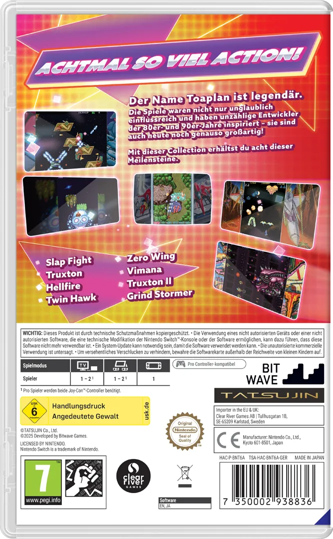 Diese Sammlung beinhaltet: Slap Fight, Truxton, Hellfire, Twin Hawk, Zero Wing, Vimana, Truxton II und Grind Stormer. Achtmal so viel Action, Tausendmal mehr Spaß und eine wilde Zeitreise zurück in die von Neonlichtern erleuchteten Spielhallen von damals!